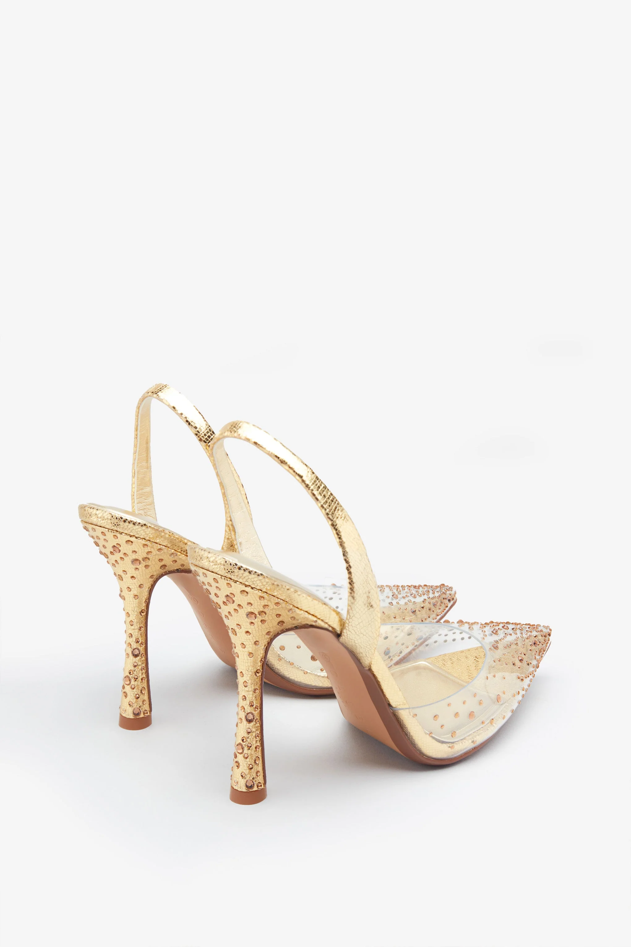 Covergirl | Tacones de Punta con tira Trasera y brillantes Dorados